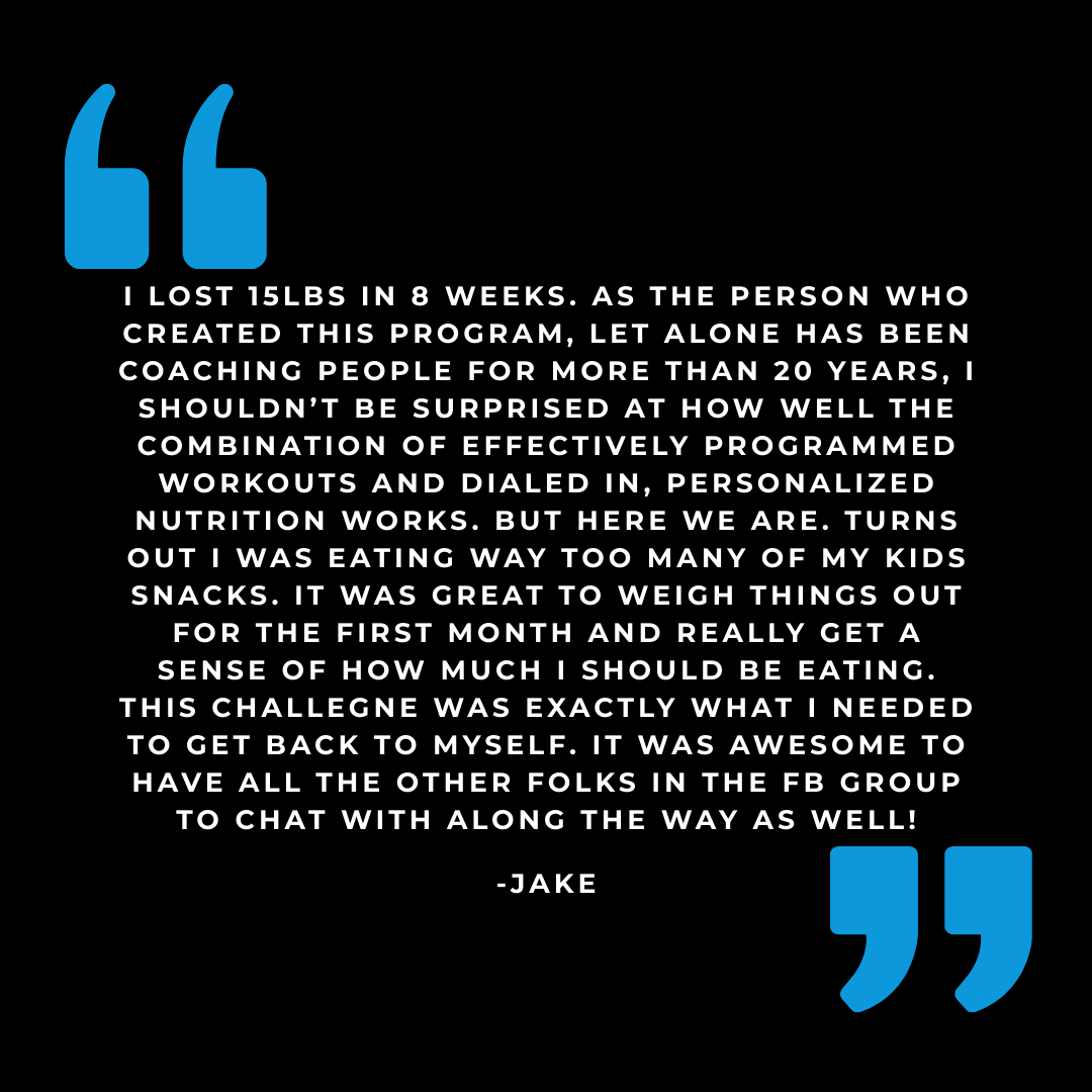We charge $150/hr for private coaching. You’re getting 8 weeks of coaching, nutrition, and accountability for less than $20/week.