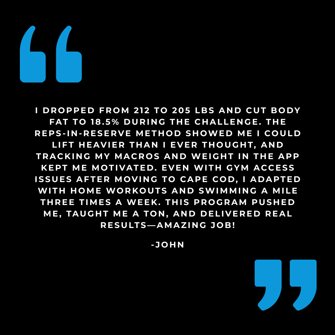 Life happens. The program is progressive, so just pick up where you left off. The only way to fail is to quit entirely. Consistency beats perfection. We aren’t here to judge you, we’re here to get you to your goals.